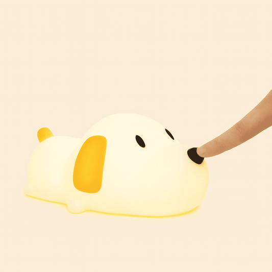 - Veilleuse chien en silicone : souple et sécurisée, parfaite pour les bébés.