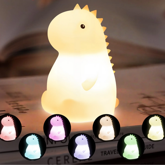 - Veilleuse dinosaure silicone : souple, sécurisée et adaptée aux plus jeunes.