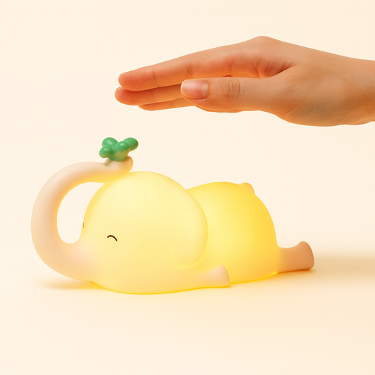 - Veilleuse éléphant en silicone : douce au toucher, sûre pour les bébés.