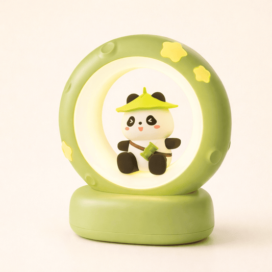 La lampe veilleuse ours, la lampe veilleuse panda, la lampe veilleuse lapin ou la lampe veilleuse dinosaure transforment la chambre en univers rassurant et ludique.