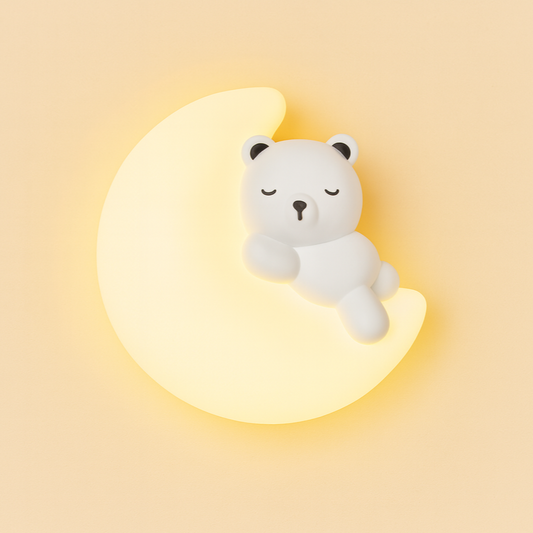 LED basse consommation, formats compacts, matières adaptées : la veilleuse lune s’intègre naturellement au quotidien des parents. On la place, on l’allume, elle apaise tout simplement.