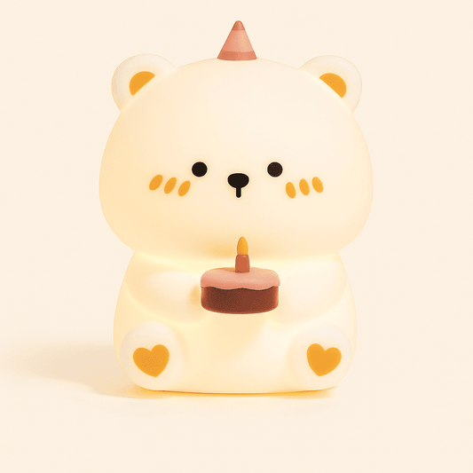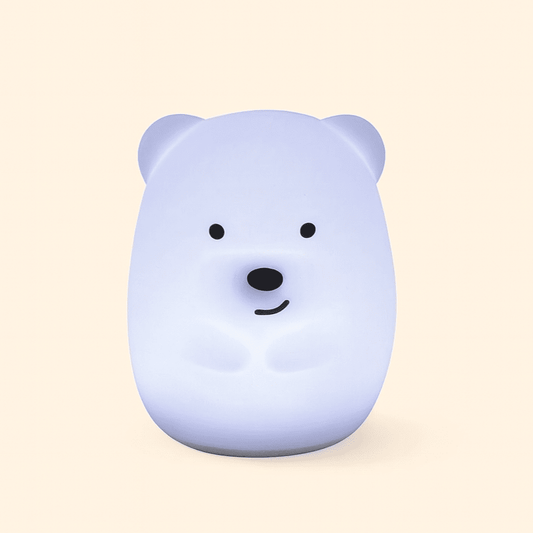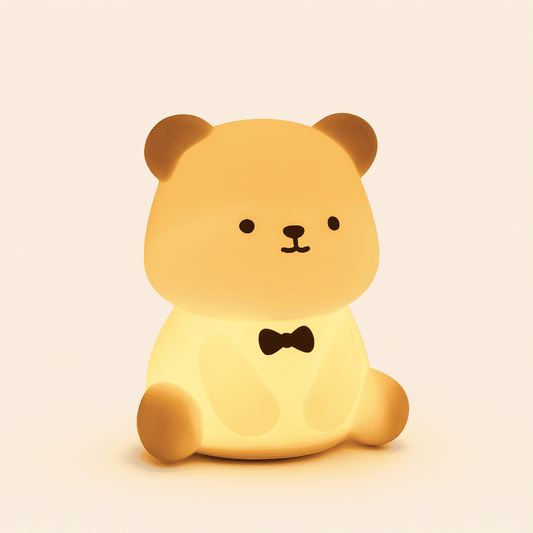 La veilleuse ours diffuse une lumière feutrée qui facilite l'endormissement et aide les parents à gérer les réveils nocturnes sans allumer la lampe principale. Elle devient un repère nocturne rassurant et discret.