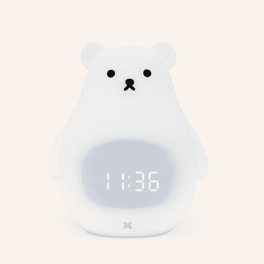 - Veilleuse réveil ours : combine éclairage rassurant et repères de sommeil.