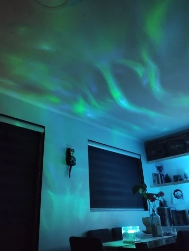 Cette lampe projette différents univers : ciel étoilé, lumière du nord, vagues océaniques…